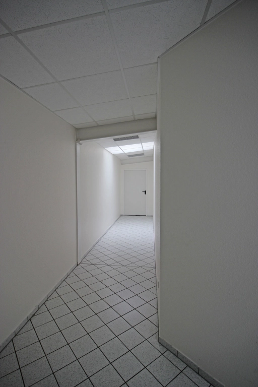Die Bodenbeläge bestehen aus einer Kombination aus Fliesen und Teppichboden, was sowohl eine angenehme Arbeitsatmosphäre als auch pflegeleichte Nutzung gewährleistet.