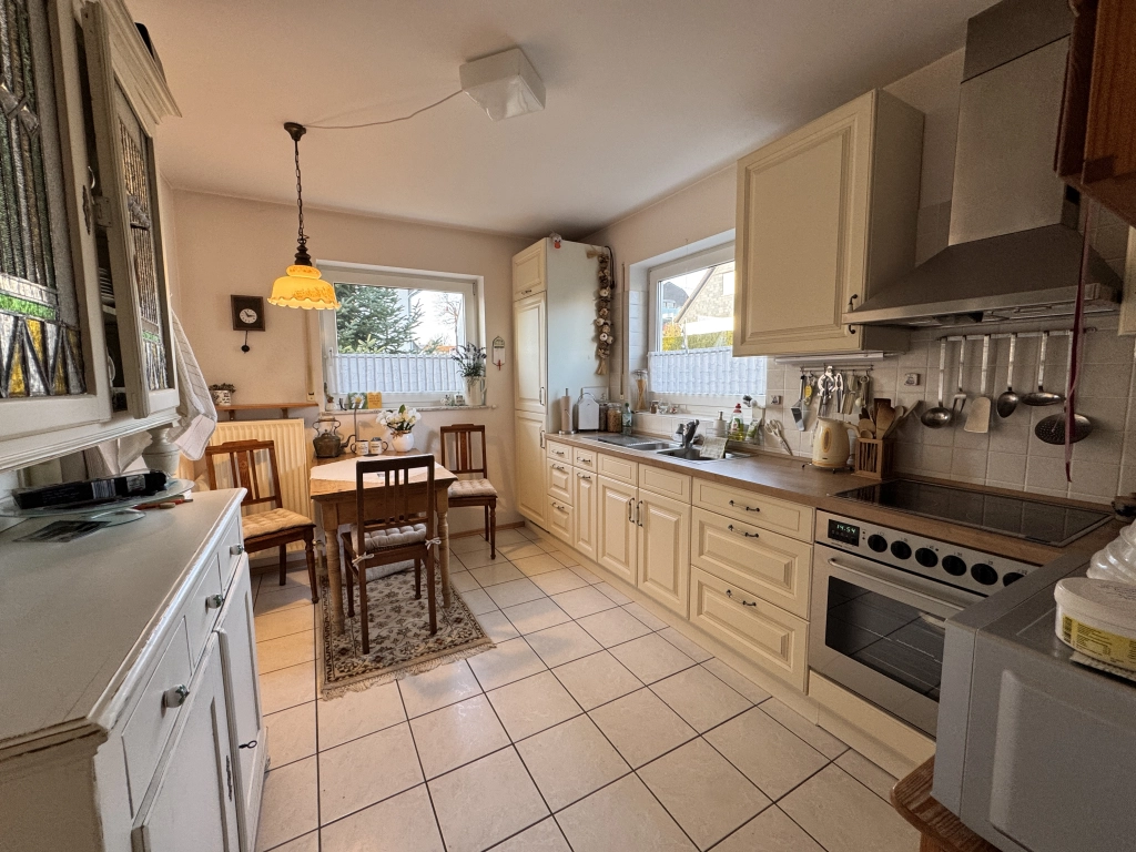 Ein weiterer praktischer Mehrwert ist die vorhandene Garage mit elektrischem Tor, die sowohl Komfort als auch Sicherheit bietet. Zusätzlich wurde im Hauswirtschaftsraum kürzlich eine dreifachverriegelte Sicherheitstür installiert – ein deutliches Qualitätsmerkmal, das den Sicherheitsstandard sinnvoll erhöht.