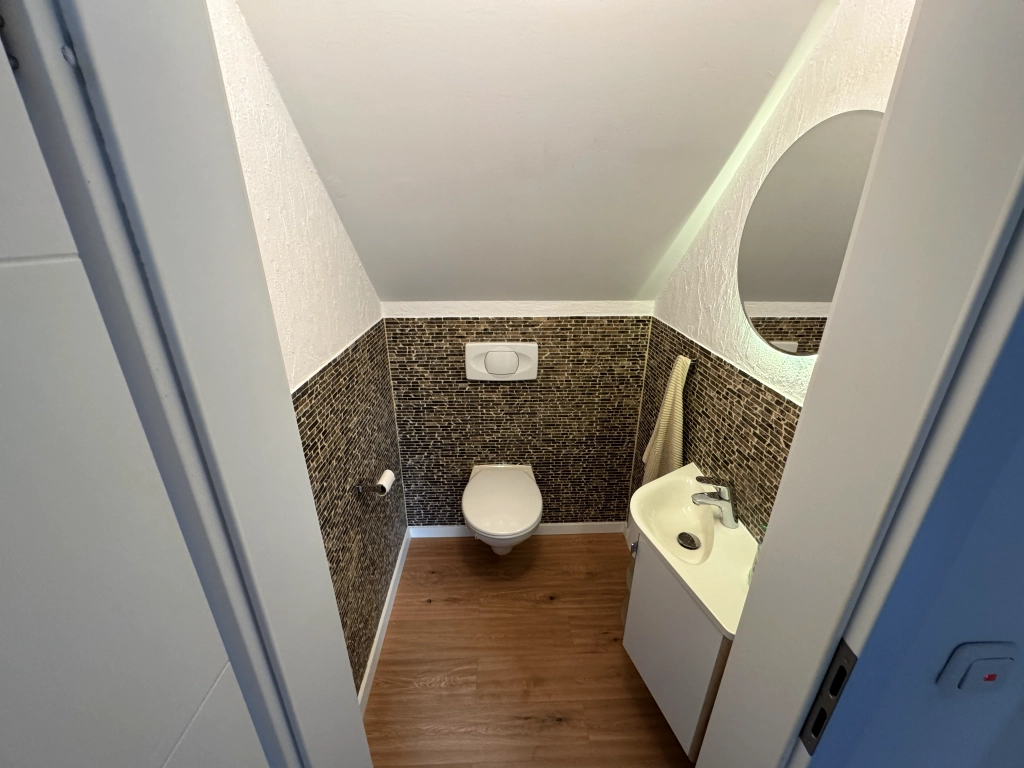 Zusätzlich stehen im Erdgeschoss weitere Nutz- und Nebenflächen zur Verfügung – ideal für Homeoffice, Haushalt, Hobby oder Besuch. Hier finden Sie einen Hauswirtschaftsraum, ein Hobby-/Gästezimmer sowie ein separates WC. Damit gewinnt die Immobilie spürbar an Funktionalität und Alltagstauglichkeit.